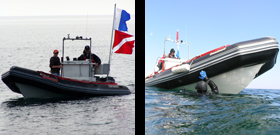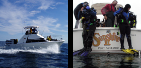 30' Trojan with twin 225 horsepower engines. Equipped with a full galley, running water, and head. Sleeps six. Ready for six divers, plus Captain and crew.